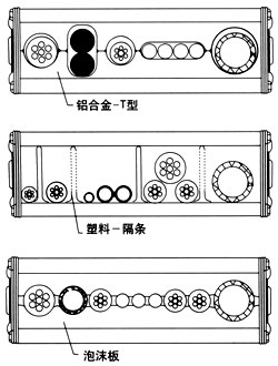 TLG铝合金型是解决较大钢链的唯一的解决办法。支撑板可根据使用者的要求生产。牢固的结构,使支撑板宽度可达到1000mm。 TLG型钢制拖链带塑料隔条,可随意移动调节位置,进行多种分隔,见左图。 如果电缆规格多,可选用此经济的装置。 TLG泡沫支撑板具有很多优点,使电缆得到最好的保护,以及适合于高速行程的情况下。许多著名的汽车生产厂家多年来均选用此装置,所有电缆均被分布在中心位置的纤维内。 TLG型的护板采用铝合金全封闭型——“银星护板”型号TLG的拖链是新开发的“银星护板”,采用铝合金制造,供用户选用。订货号为325/525/625,而不是320/520/620。 TLG型带不锈钢带的钢链 外部和内部可安装弹性钢带,以保护电缆和更好地保持内部的清洁,安全可靠。 |